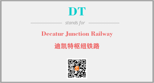 上述内容是“Decatur Junction Railway”作为“DT”的缩写,解释为“迪凯特枢纽铁路”时的信息,以及英文缩略词DT所代表的英文单词,其对应的中文拼音、详细解释以及在英文中的流行度和相关分类、应用领域及应用示例等。