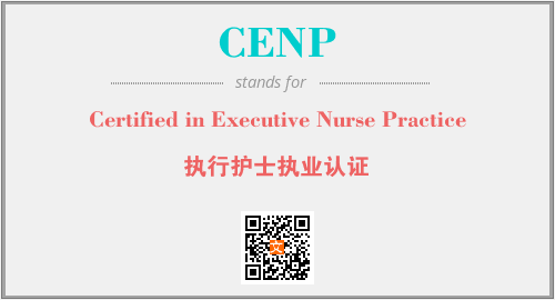 英文缩略词“CENP”经常作为“Certified in Executive Nurse Practice”的英文缩写来使用,中文表示:“执行护士执业认证”。本文将详细介绍英文缩写词CENP所代表英文单词,其对应的中文拼音、详细解释以及在英语中的流行度。此外,还有关于缩略词CENP的分类、应用领域及相关应用示例等。