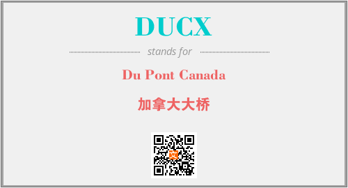 上述内容是“Du Pont Canada”作为“DUCX”的缩写,解释为“加拿大大桥”时的信息,以及英文缩略词DUCX所代表的英文单词,其对应的中文拼音、详细解释以及在英文中的流行度和相关分类、应用领域及应用示例等。