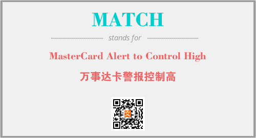 英文缩略词“MATCH”经常作为“MasterCard Alert to Control High”的英文缩写来使用,中文表示:“万事达卡警报控制高”。本文将详细介绍英文缩写词MATCH所代表英文单词,其对应的中文拼音、详细解释以及在英语中的流行度。此外,还有关于缩略词MATCH的分类、应用领域及相关应用示例等。