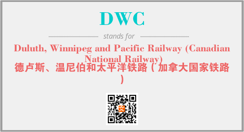 上述内容是“Duluth, Winnipeg and Pacific Railway (Canadian National Railway)”作为“DWC”的缩写,解释为“德卢斯、温尼伯和太平洋铁路(加拿大国家铁路)”时的信息,以及英文缩略词DWC所代表的英文单词,其对应的中文拼音、详细解释以及在英文中的流行度和相关分类、应用领域及应用示例等。