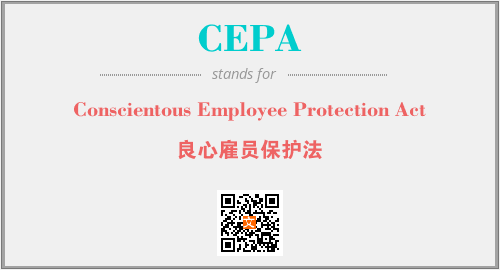 上述内容是“Conscientous Employee Protection Act”作为“CEPA”的缩写,解释为“良心雇员保护法”时的信息,以及英文缩略词CEPA所代表的英文单词,其对应的中文拼音、详细解释以及在英文中的流行度和相关分类、应用领域及应用示例等。