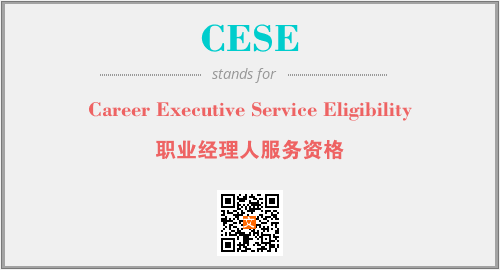 上述内容是“Career Executive Service Eligibility”作为“CESE”的缩写,解释为“职业经理人服务资格”时的信息,以及英文缩略词CESE所代表的英文单词,其对应的中文拼音、详细解释以及在英文中的流行度和相关分类、应用领域及应用示例等。
