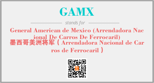 上述内容是“General American de Mexico (Arrendadora Nacional De Carros De Ferrocaril)”作为“GAMX”的缩写,解释为“墨西哥美洲将军(Arrendadora Nacional de Carros de Ferrocaril)”时的信息,以及英文缩略词GAMX所代表的英文单词,其对应的中文拼音、详细解释以及在英文中的流行度和相关分类、应用领域及应用示例等。
