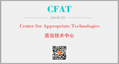 上述内容是“Center for Appropriate Technologies”作为“CFAT”的缩写,解释为“适当技术中心”时的信息,以及英文缩略词CFAT所代表的英文单词,其对应的中文拼音、详细解释以及在英文中的流行度和相关分类、应用领域及应用示例等。