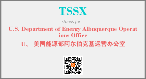 上述内容是“U.S. Department of Energy Albuquerque Operations Office”作为“TSSX”的缩写,解释为“U、 美国能源部阿尔伯克基运营办公室”时的信息,以及英文缩略词TSSX所代表的英文单词,其对应的中文拼音、详细解释以及在英文中的流行度和相关分类、应用领域及应用示例等。