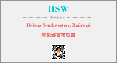 英文缩略词“HSW”经常作为“Helena Southwestern Railroad”的英文缩写来使用,中文表示:“海伦娜西南铁路”。本文将详细介绍英文缩写词HSW所代表英文单词,其对应的中文拼音、详细解释以及在英语中的流行度。此外,还有关于缩略词HSW的分类、应用领域及相关应用示例等。