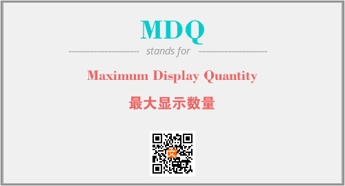 英文缩略词“MDQ”经常作为“Maximum Display Quantity”的英文缩写来使用,中文表示:“最大显示数量”。本文将详细介绍英文缩写词MDQ所代表英文单词,其对应的中文拼音、详细解释以及在英语中的流行度。此外,还有关于缩略词MDQ的分类、应用领域及相关应用示例等。