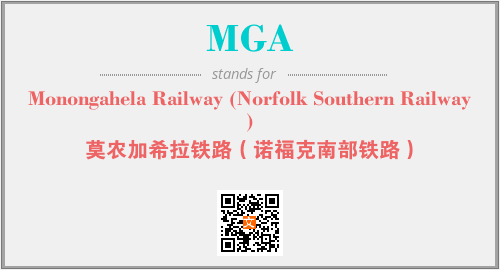 上述内容是“Monongahela Railway (Norfolk Southern Railway)”作为“MGA”的缩写,解释为“莫农加希拉铁路(诺福克南部铁路)”时的信息,以及英文缩略词MGA所代表的英文单词,其对应的中文拼音、详细解释以及在英文中的流行度和相关分类、应用领域及应用示例等。