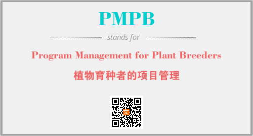英文缩略词“PMPB”经常作为“Program Management for Plant Breeders”的英文缩写来使用,中文表示:“植物育种者的项目管理”。本文将详细介绍英文缩写词PMPB所代表英文单词,其对应的中文拼音、详细解释以及在英语中的流行度。此外,还有关于缩略词PMPB的分类、应用领域及相关应用示例等。