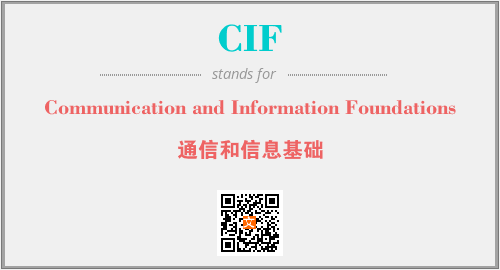 英文缩略词“CIF”经常作为“Communication and Information Foundations”的英文缩写来使用,中文表示:“通信和信息基础”。本文将详细介绍英文缩写词CIF所代表英文单词,其对应的中文拼音、详细解释以及在英语中的流行度。此外,还有关于缩略词CIF的分类、应用领域及相关应用示例等。