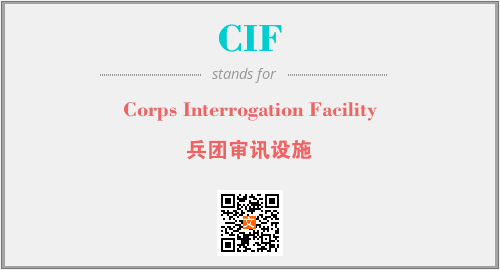 英文缩略词“CIF”经常作为“Corps Interrogation Facility”的英文缩写来使用,中文表示:“兵团审讯设施”。本文将详细介绍英文缩写词CIF所代表英文单词,其对应的中文拼音、详细解释以及在英语中的流行度。此外,还有关于缩略词CIF的分类、应用领域及相关应用示例等。