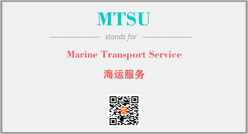 英文缩略词“MTSU”经常作为“Marine Transport Service”的英文缩写来使用,中文表示:“海运服务”。本文将详细介绍英文缩写词MTSU所代表英文单词,其对应的中文拼音、详细解释以及在英语中的流行度。此外,还有关于缩略词MTSU的分类、应用领域及相关应用示例等。