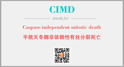上述内容是“Caspase independent mitotic death”作为“CIMD”的缩写,解释为“半胱天冬酶非依赖性有丝分裂死亡”时的信息,以及英文缩略词CIMD所代表的英文单词,其对应的中文拼音、详细解释以及在英文中的流行度和相关分类、应用领域及应用示例等。