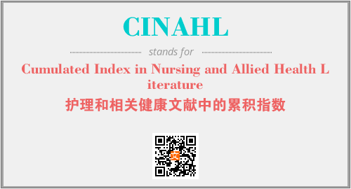 英文缩略词“CINAHL”经常作为“Cumulated Index in Nursing and Allied Health Literature”的英文缩写来使用,中文表示:“护理和相关健康文献中的累积指数”。本文将详细介绍英文缩写词CINAHL所代表英文单词,其对应的中文拼音、详细解释以及在英语中的流行度。此外,还有关于缩略词CINAHL的分类、应用领域及相关应用示例等。