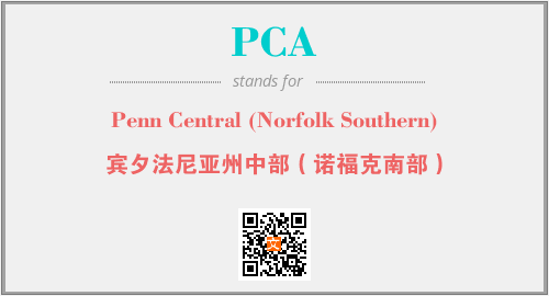 上述内容是“Penn Central (Norfolk Southern)”作为“PCA”的缩写,解释为“宾夕法尼亚州中部(诺福克南部)”时的信息,以及英文缩略词PCA所代表的英文单词,其对应的中文拼音、详细解释以及在英文中的流行度和相关分类、应用领域及应用示例等。