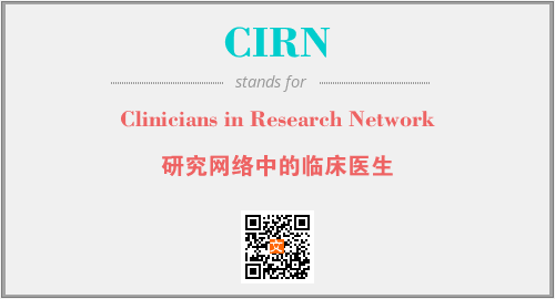 上述内容是“Clinicians in Research Network”作为“CIRN”的缩写,解释为“研究网络中的临床医生”时的信息,以及英文缩略词CIRN所代表的英文单词,其对应的中文拼音、详细解释以及在英文中的流行度和相关分类、应用领域及应用示例等。