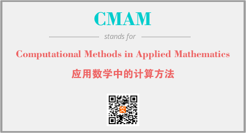 英文缩略词“CMAM”经常作为“Computational Methods in Applied Mathematics”的英文缩写来使用,中文表示:“应用数学中的计算方法”。本文将详细介绍英文缩写词CMAM所代表英文单词,其对应的中文拼音、详细解释以及在英语中的流行度。此外,还有关于缩略词CMAM的分类、应用领域及相关应用示例等。