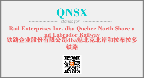 上述内容是“Rail Enterprises Inc. dba Quebec North Shore and Labrador Railway”作为“QNSX”的缩写,解释为“铁路企业股份有限公司dba魁北克北岸和拉布拉多铁路”时的信息,以及英文缩略词QNSX所代表的英文单词,其对应的中文拼音、详细解释以及在英文中的流行度和相关分类、应用领域及应用示例等。