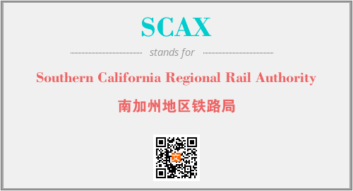 英文缩略词“SCAX”经常作为“Southern California Regional Rail Authority”的英文缩写来使用,中文表示:“南加州地区铁路局”。本文将详细介绍英文缩写词SCAX所代表英文单词,其对应的中文拼音、详细解释以及在英语中的流行度。此外,还有关于缩略词SCAX的分类、应用领域及相关应用示例等。