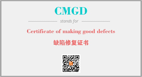 上述内容是“Certificate of making good defects”作为“CMGD”的缩写,解释为“缺陷修复证书”时的信息,以及英文缩略词CMGD所代表的英文单词,其对应的中文拼音、详细解释以及在英文中的流行度和相关分类、应用领域及应用示例等。