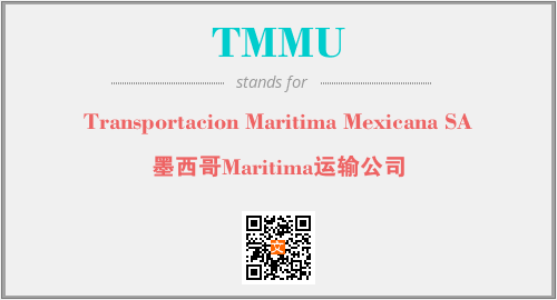 英文缩略词“TMMU”经常作为“Transportacion Maritima Mexicana SA”的英文缩写来使用,中文表示:“墨西哥Maritima运输公司”。本文将详细介绍英文缩写词TMMU所代表英文单词,其对应的中文拼音、详细解释以及在英语中的流行度。此外,还有关于缩略词TMMU的分类、应用领域及相关应用示例等。