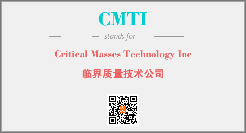英文缩略词“CMTI”经常作为“Critical Masses Technology Inc”的英文缩写来使用,中文表示:“临界质量技术公司”。本文将详细介绍英文缩写词CMTI所代表英文单词,其对应的中文拼音、详细解释以及在英语中的流行度。此外,还有关于缩略词CMTI的分类、应用领域及相关应用示例等。