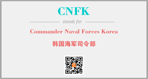 英文缩略词“CNFK”经常作为“Commander Naval Forces Korea”的英文缩写来使用,中文表示:“韩国海军司令部”。本文将详细介绍英文缩写词CNFK所代表英文单词,其对应的中文拼音、详细解释以及在英语中的流行度。此外,还有关于缩略词CNFK的分类、应用领域及相关应用示例等。