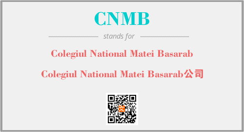 上述内容是“Colegiul National Matei Basarab”作为“CNMB”的缩写,解释为“Colegiul National Matei Basarab公司”时的信息,以及英文缩略词CNMB所代表的英文单词,其对应的中文拼音、详细解释以及在英文中的流行度和相关分类、应用领域及应用示例等。
