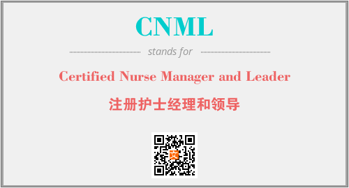 上述内容是“Certified Nurse Manager and Leader”作为“CNML”的缩写,解释为“注册护士经理和领导”时的信息,以及英文缩略词CNML所代表的英文单词,其对应的中文拼音、详细解释以及在英文中的流行度和相关分类、应用领域及应用示例等。