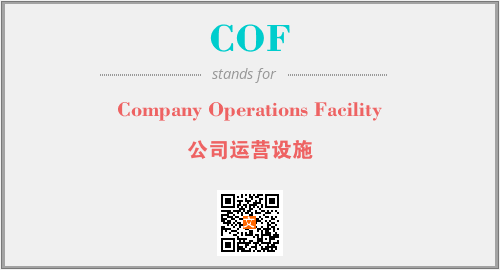 上述内容是“Company Operations Facility”作为“COF”的缩写,解释为“公司运营设施”时的信息,以及英文缩略词COF所代表的英文单词,其对应的中文拼音、详细解释以及在英文中的流行度和相关分类、应用领域及应用示例等。