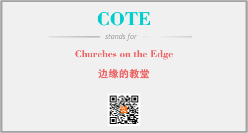上述内容是“Churches on the Edge”作为“COTE”的缩写,解释为“边缘的教堂”时的信息,以及英文缩略词COTE所代表的英文单词,其对应的中文拼音、详细解释以及在英文中的流行度和相关分类、应用领域及应用示例等。