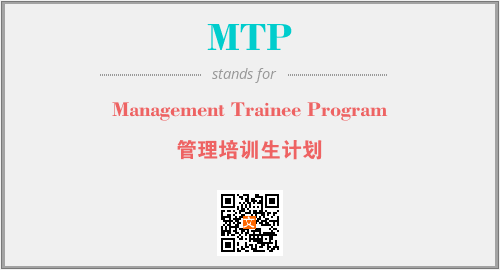 上述内容是“Management Trainee Program”作为“MTP”的缩写,解释为“管理培训生计划”时的信息,以及英文缩略词MTP所代表的英文单词,其对应的中文拼音、详细解释以及在英文中的流行度和相关分类、应用领域及应用示例等。