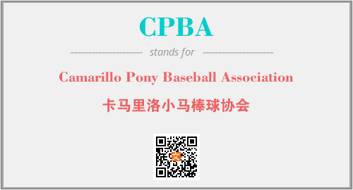 英文缩略词“CPBA”经常作为“Camarillo Pony Baseball Association”的英文缩写来使用,中文表示:“卡马里洛小马棒球协会”。本文将详细介绍英文缩写词CPBA所代表英文单词,其对应的中文拼音、详细解释以及在英语中的流行度。此外,还有关于缩略词CPBA的分类、应用领域及相关应用示例等。