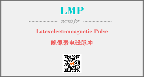 英文缩略词“LMP”经常作为“Latexelectromagnetic Pulse”的英文缩写来使用,中文表示:“晚像素电磁脉冲”。本文将详细介绍英文缩写词LMP所代表英文单词,其对应的中文拼音、详细解释以及在英语中的流行度。此外,还有关于缩略词LMP的分类、应用领域及相关应用示例等。