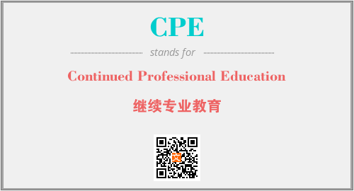 英文缩略词“CPE”经常作为“Continued Professional Education”的英文缩写来使用,中文表示:“继续专业教育”。本文将详细介绍英文缩写词CPE所代表英文单词,其对应的中文拼音、详细解释以及在英语中的流行度。此外,还有关于缩略词CPE的分类、应用领域及相关应用示例等。