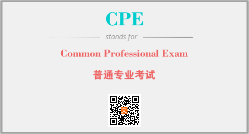 英文缩略词“CPE”经常作为“Common Professional Exam”的英文缩写来使用,中文表示:“普通专业考试”。本文将详细介绍英文缩写词CPE所代表英文单词,其对应的中文拼音、详细解释以及在英语中的流行度。此外,还有关于缩略词CPE的分类、应用领域及相关应用示例等。