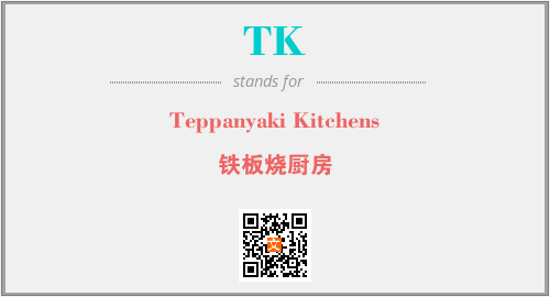 上述内容是“Teppanyaki Kitchens”作为“TK”的缩写,解释为“铁板烧厨房”时的信息,以及英文缩略词TK所代表的英文单词,其对应的中文拼音、详细解释以及在英文中的流行度和相关分类、应用领域及应用示例等。