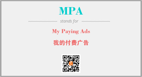 上述内容是“My Paying Ads”作为“MPA”的缩写,解释为“我的付费广告”时的信息,以及英文缩略词MPA所代表的英文单词,其对应的中文拼音、详细解释以及在英文中的流行度和相关分类、应用领域及应用示例等。