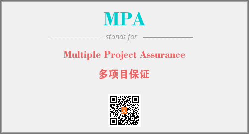 上述内容是“Multiple Project Assurance”作为“MPA”的缩写,解释为“多项目保证”时的信息,以及英文缩略词MPA所代表的英文单词,其对应的中文拼音、详细解释以及在英文中的流行度和相关分类、应用领域及应用示例等。
