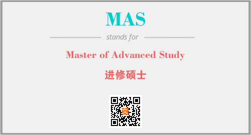 上述内容是“Master of Advanced Study”作为“MAS”的缩写,解释为“进修硕士”时的信息,以及英文缩略词MAS所代表的英文单词,其对应的中文拼音、详细解释以及在英文中的流行度和相关分类、应用领域及应用示例等。