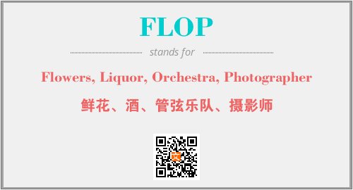 上述内容是“Flowers, Liquor, Orchestra, Photographer”作为“FLOP”的缩写,解释为“鲜花、酒、管弦乐队、摄影师”时的信息,以及英文缩略词FLOP所代表的英文单词,其对应的中文拼音、详细解释以及在英文中的流行度和相关分类、应用领域及应用示例等。