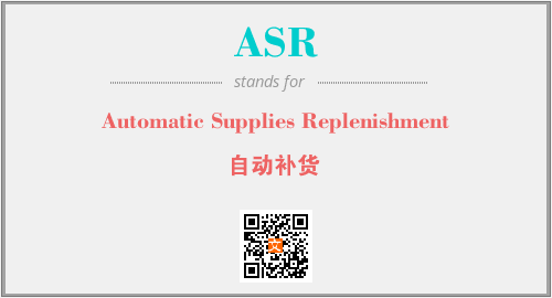 英文缩略词“ASR”经常作为“Automatic Supplies Replenishment”的英文缩写来使用,中文表示:“自动补货”。本文将详细介绍英文缩写词ASR所代表英文单词,其对应的中文拼音、详细解释以及在英语中的流行度。此外,还有关于缩略词ASR的分类、应用领域及相关应用示例等。