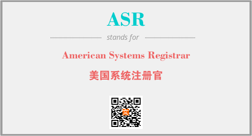 以上为American Systems Registrar英文缩略词ASR的中文解释,以及该英文缩写在英语的流行度、分类和应用领域方面的信息。
