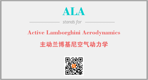 英文缩略词“ALA”经常作为“Active Lamborghini Aerodynamics”的英文缩写来使用,中文表示:“主动兰博基尼空气动力学”。本文将详细介绍英文缩写词ALA所代表英文单词,其对应的中文拼音、详细解释以及在英语中的流行度。此外,还有关于缩略词ALA的分类、应用领域及相关应用示例等。