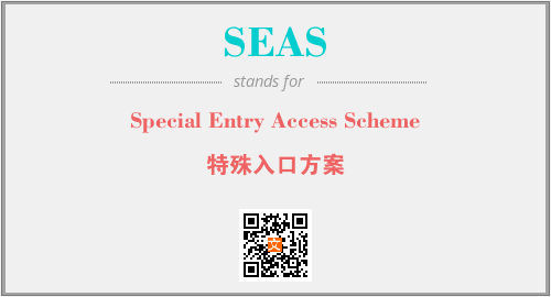 上述内容是“Special Entry Access Scheme”作为“SEAS”的缩写,解释为“特殊入口方案”时的信息,以及英文缩略词SEAS所代表的英文单词,其对应的中文拼音、详细解释以及在英文中的流行度和相关分类、应用领域及应用示例等。