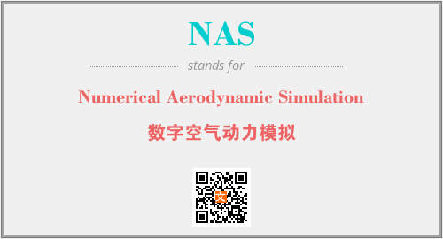 上述内容是“Numerical Aerodynamic Simulation”作为“NAS”的缩写,解释为“数字空气动力模拟”时的信息,以及英文缩略词NAS所代表的英文单词,其对应的中文拼音、详细解释以及在英文中的流行度和相关分类、应用领域及应用示例等。