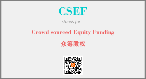上述内容是“Crowd sourced Equity Funding”作为“CSEF”的缩写,解释为“众筹股权”时的信息,以及英文缩略词CSEF所代表的英文单词,其对应的中文拼音、详细解释以及在英文中的流行度和相关分类、应用领域及应用示例等。