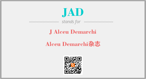 上述内容是“J Alceu Demarchi”作为“JAD”的缩写,解释为“Alceu Demarchi杂志”时的信息,以及英文缩略词JAD所代表的英文单词,其对应的中文拼音、详细解释以及在英文中的流行度和相关分类、应用领域及应用示例等。