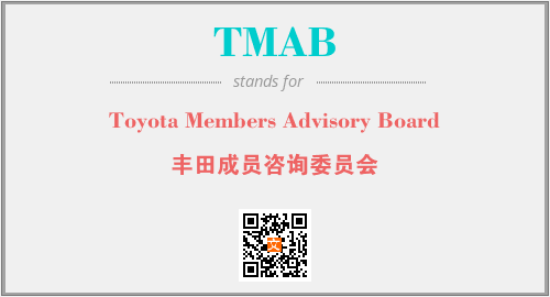 上述内容是“Toyota Members Advisory Board”作为“TMAB”的缩写,解释为“丰田成员咨询委员会”时的信息,以及英文缩略词TMAB所代表的英文单词,其对应的中文拼音、详细解释以及在英文中的流行度和相关分类、应用领域及应用示例等。